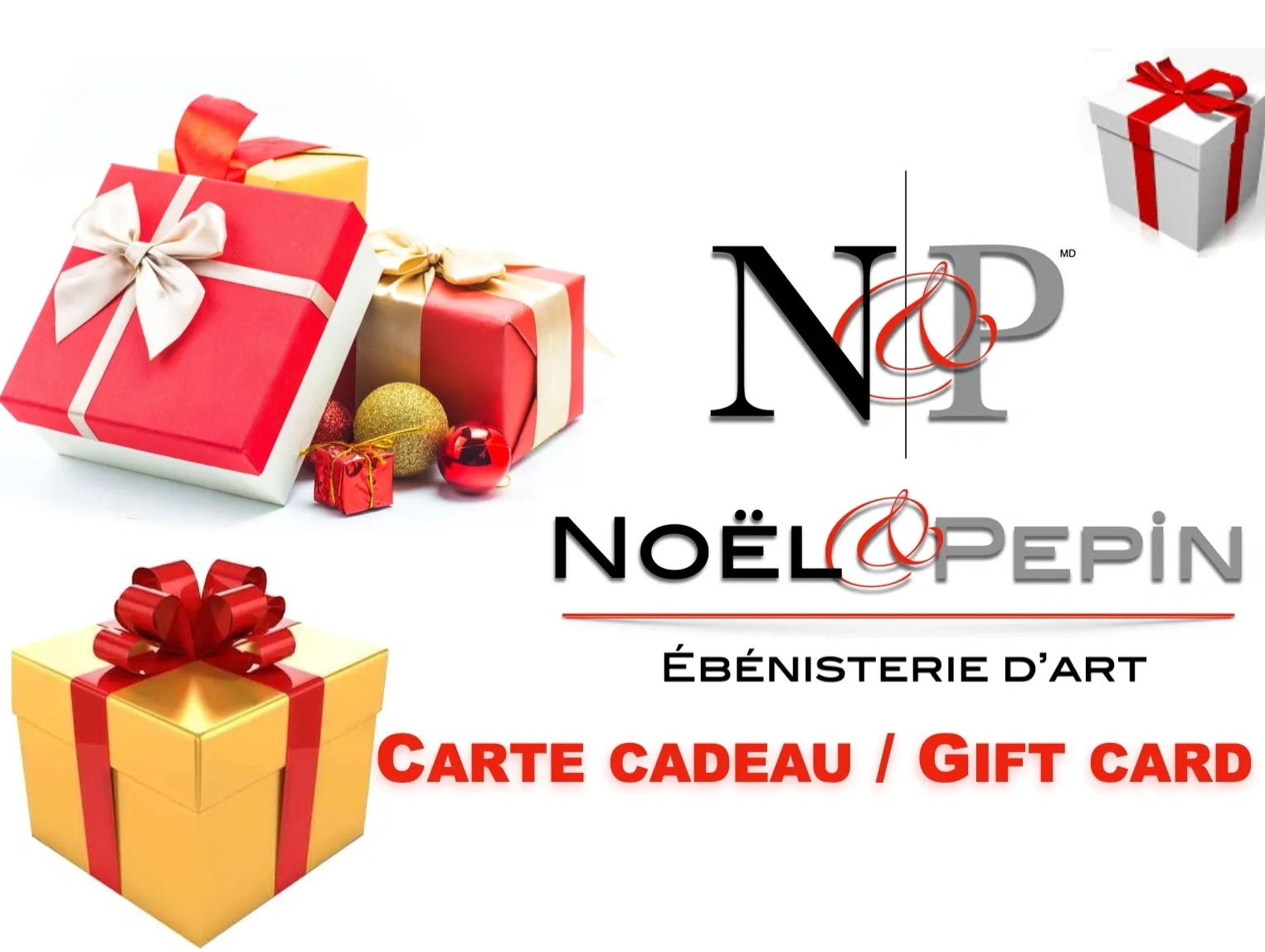 Noël & Pepin pour des cadeaux exceptionnels, échangeable dans tout nos points de vente ou en ligne / Discover Noël & Pepin gift cards for exceptional gifts, redeemable at all our points of sale or online.